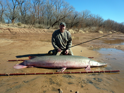 ![]() Tucker's fish broke the previous alligator gar record by more than six pounds. Sean Chatham, also from Ardmore, held the former record for a 184-pound, 3-ounce fish caught from the Red River in 2006. Alligator gar are truly unique fish and can be found in warm, sluggish rivers in the southeast quarter of the state. Alligator gar feed primarily on fish, but are known to eat ducks and other water birds. The second largest freshwater fish in North America, the alligator gar is second in size only to the white sturgeon. Reaching weights of up to 300 pounds, the alligator gar can stretch to lengths over nine feet. Historically, the alligator gar’s home range included the Mississippi River and its tributaries from the lower reaches of the Ohio and the Missouri rivers southward to the Gulf of Mexico. Today the range is significantly smaller. The fish are primarily restricted to coastal rivers, with inland populations persisting not only in Oklahoma, but also in Florida, Georgia, Alabama, Tennessee, Arkansas, and Texas. Female alligator gars don’t reach sexual maturity until 11 years of age, whereas males take about six years. Gar have a unique ability to use their gills or a lung-like gas bladder that enables them to come to the surface and gulp for air. Studies indicate that gizzard shad are the top food of choice when populations are present in lakes. Alligator gar also are known to eat certain sport fish as well as other gars, including their own kind. One study in Texas found they even eat coots. Anglers once believed that the alligator gar was a significant threat to sport fish species and often were viewed as a nuisance, but today, with better knowledge of the species’ habits and behaviors, the fish is recognized as an important part of Oklahoma’s waters. For a complete list of record fish and the procedures regarding certifying state record fish, consult the current “Oklahoma Fishing Guide” or log on to wildlifedepartment.com. Anglers who believe they may have hooked a record fish must weigh the fish on an Oklahoma State Department of Agriculture certified scale, and a Wildlife Department employee must verify the weight.
