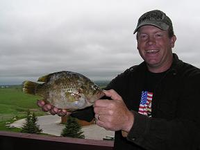SHERIDAN - The cast to catch a smallmouth bass May 12 netted a Sheridan angler a bass and a state record at that - but rather than the familiar smallmouth, it was the sunfish-like rock bass that made history. Just as Randy Reece’s night crawler hit the surface on the private pond near Sheridan, he noticed a swirl and hooked the fish. After a quick battle, Reece landed the 1.76-pound rock bass, which unbeknownst to him would prove to be the new state record. "I had tossed two rock bass back but decided to keep this one only because it had been hooked deep." he said. "A friend said that this was a large rock bass, and I should have it checked out for a state record." That proved to be an eventful stroke of fate and good advice, because the fish beat the former record by near one half pound. In addition, the 39-year-old hunting outfitter later released an even larger rock bass not knowing he was dealing with epic specimens of the species. The fish he was principally after were also biting, with Reece landing several smallmouth bass from 2 to 3 pounds. Although called a bass, rock bass more closely resemble sunfish or panfish as evidenced by the record fish measuring 13 inches long with a 12.5-inch girth. Rock bass are easily distinguished from other sunfish by its red eyes. Reece loves to take his two children fishing. Daughter Jamie was with him when he landed the record bass and couldn’t believe its size. She’ll have frequent reminders of the day, because the fish is already at the taxidermist and will grace the family’s home. Rock bass have been introduced to several waters in northeastern Wyoming including LAK Reservoir, Lake DeSmet and the Tongue River. The species prefers pools in rubble-bottomed streams but also does well in lakes and ponds. Spawning and food habits - being readily caught on worms and flies - are similar to those of most sunfishes. A Sheridan County pond also yielded the previous state record. Caught June 7, 1996, it weighed 1.29 pounds. Two anglers share the North American rock bass record with fish weighing 3 pounds even. The latest was caught in the York River, Ontario in August 1994 and the other in Sugar Creek, Ind. in June 1969.